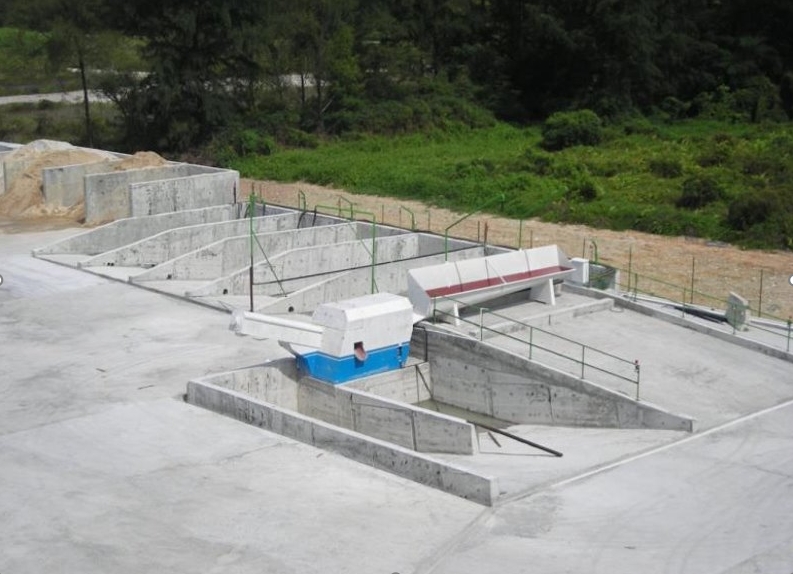 The slurry can be furthered processed into clean water by filtration through sedimentation pits or entirely reused in concrete production by storing them in agitated pits.